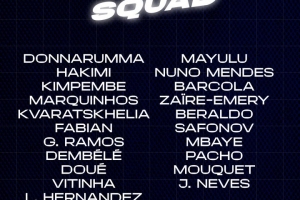 前锋:克瓦拉茨赫利亚、贡萨洛-拉莫斯、登贝莱、杜埃、巴尔科拉、姆巴耶