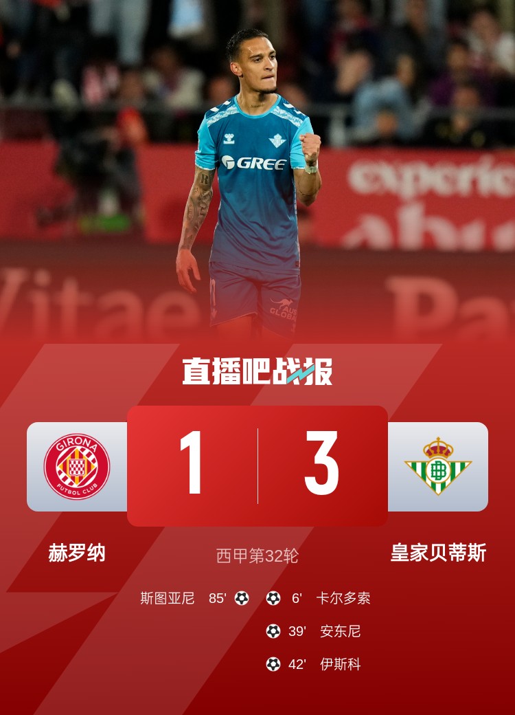 在本轮1-3不敌贝蒂斯后,赫罗纳本赛季各项赛事整体战绩为11胜8平23负。