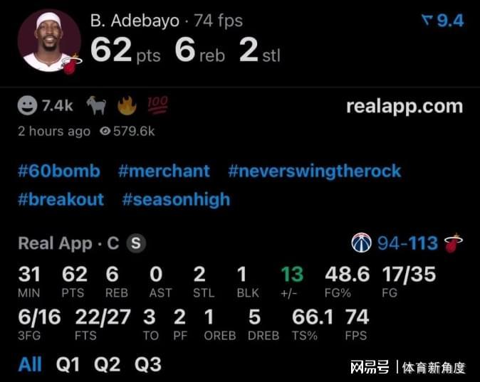 在篮球世界的风云变幻中,一场看似平淡无奇的对决——热火对阵奇才,竟上演了一出令人瞠目结舌的得分盛宴,主角正是热火队的内线猛兽,阿德巴约,球迷们昵称他为“热巴”。当终场哨声响起,比分定格在150-129,热火以一场酣畅淋漓的大胜告终,而这一切的辉煌,几乎可以归功于热巴一人之力,他以一种近乎疯狂的姿态,狂揽83分,比对手全队总分还多出几分,这不仅仅是多2分那么简单,这是对篮球极限的一次大胆探索与征服!